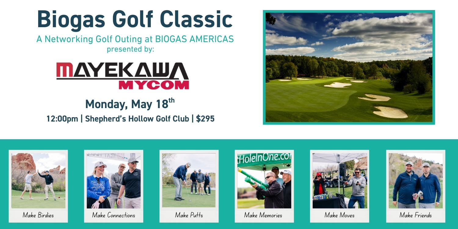 The Biogas Golf Classic presented by Mayekawa is a laid-back golf outing built around networking, fun, and a cold drink or two. Golfers of all skill levels are welcome. And whether you’re chasing birdies or chasing your ball in the woods, this is the perfect way to meet fellow biogas professionals before the conference begins.