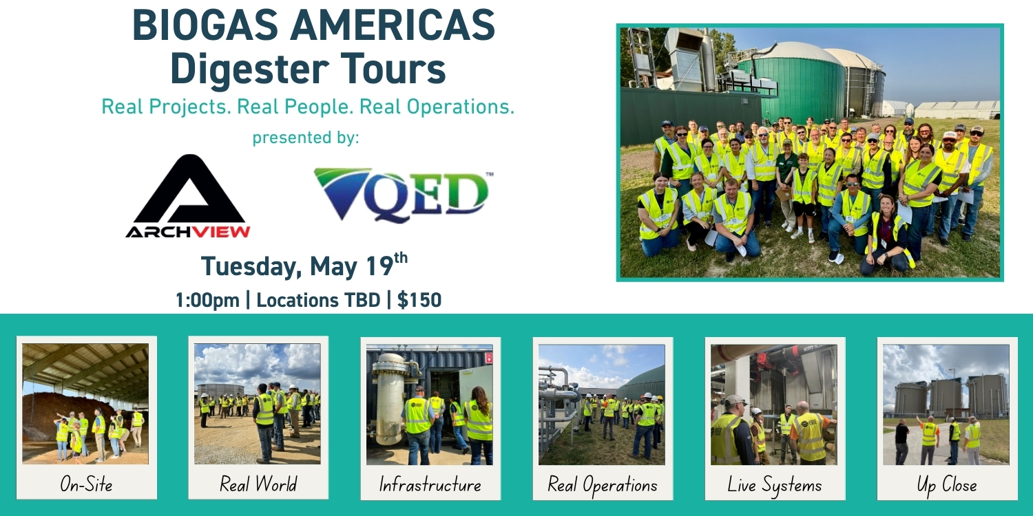 Join us for an offsite Digester Tour during BIOGAS AMERICAS and get a guided, behind-the-scenes look at a working biogas facility. You’ll walk the site with technical experts, explore real-world system design and operations, and see how projects run day-to-day, from feedstock handling to gas production and upgrading.